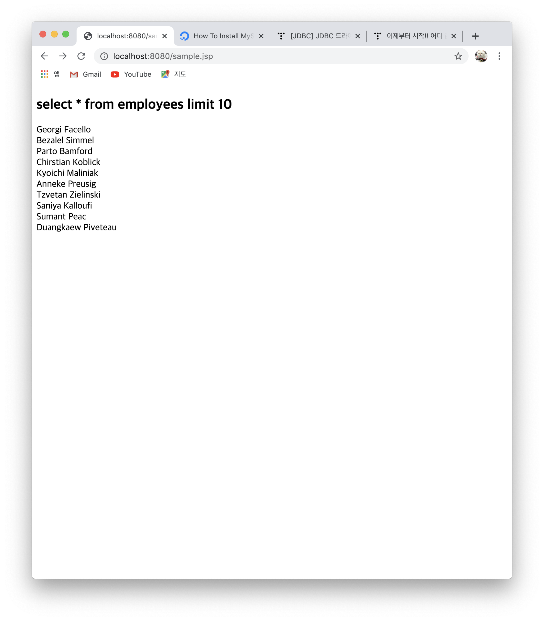 employees table 의 first_name, last_name 을 모두 잘 로드해옴을 확인할 수 있다.